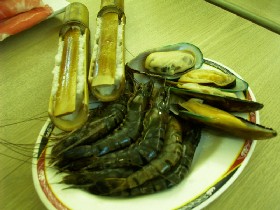 蝦子有兩種,草蝦與白蝦,都很大尾,不過吃起來感覺沒那麼新鮮,少了蝦子該有的甜味。